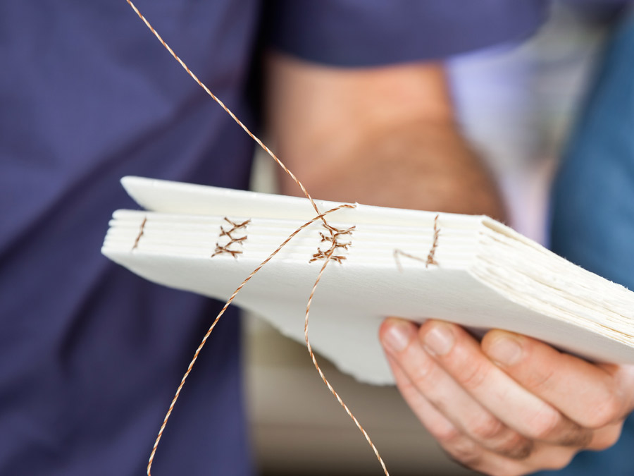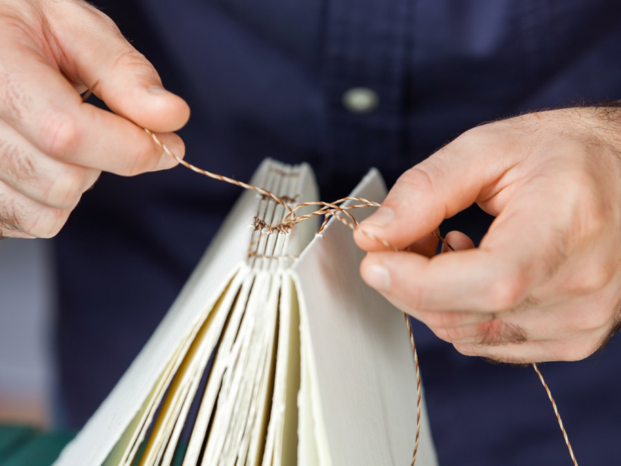Was bedeutet „Fadenbindung — in traditioneller Buchbinder-Kunst gebunden“?